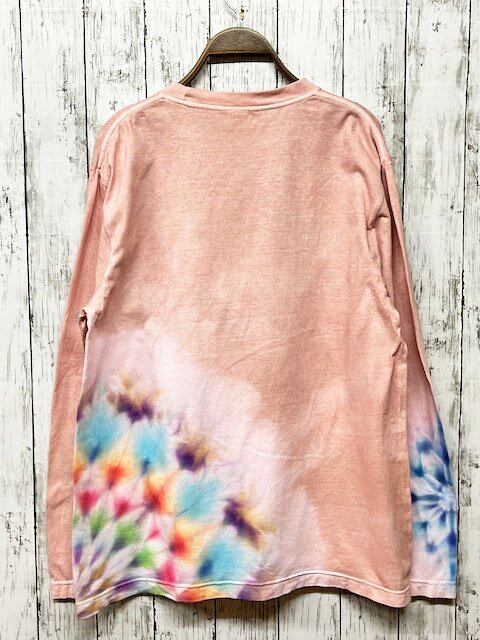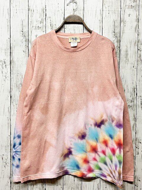 タイダイ染め Tie-dye 長袖Tシャツ Mサイズ 曼荼羅 ピンクベージュ HD18-51