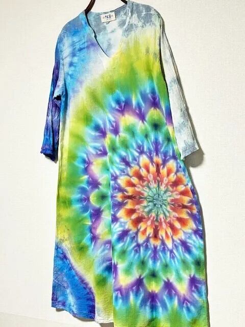 タイダイ Tie-dye ロングワンピース 彩やかで美しい孔雀大曼荼羅 HD22-22