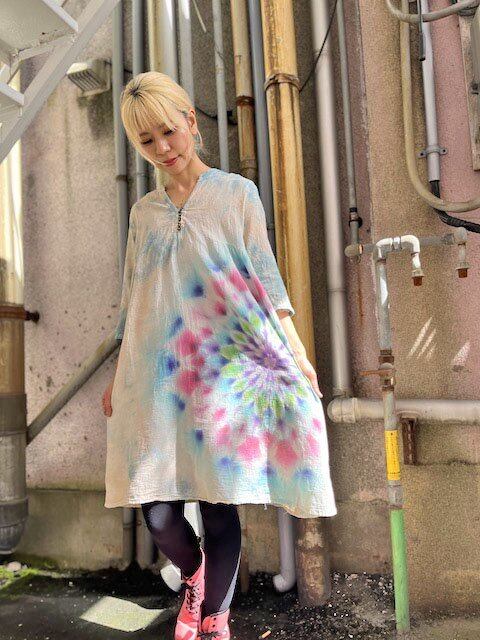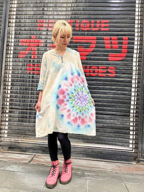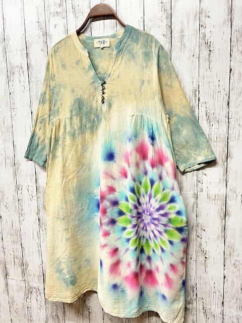 タイダイ染め Tie-dye チュニック ワンピース 淡く優しい春色の華やかな大曼荼羅 HD18-85