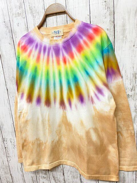 タイダイ染め Tie-dye 長袖Tシャツ Mサイズ ネイティブダイ ベージュ HD19-06
