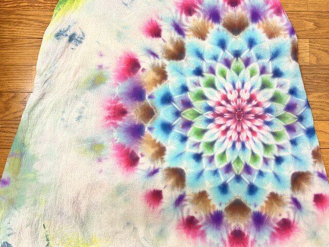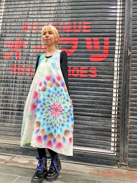 タイダイ染め 新型ノースリーブワンピース 湖面に映る虹のような優しい色合いに幻想的な大曼荼羅 HD19-10