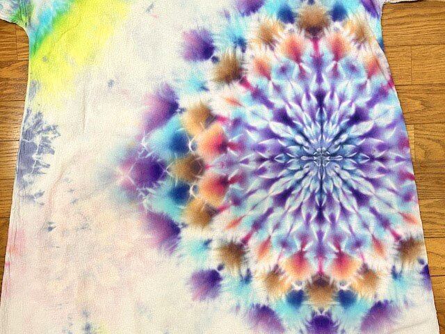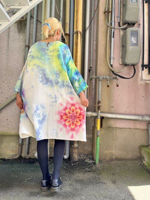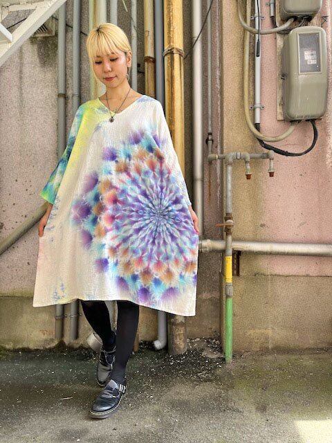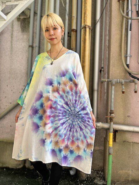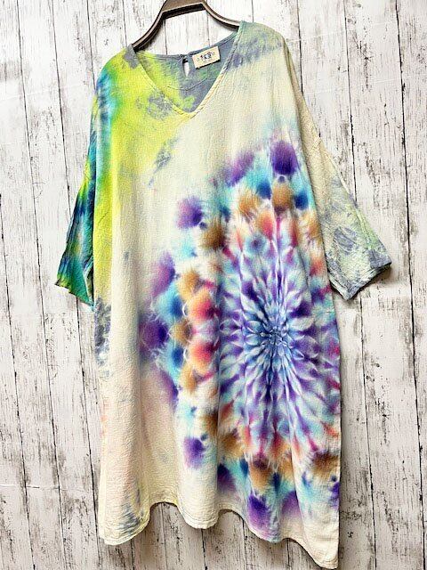 タイダイ染め Tie-dye ゆったりワンピース 新緑の空や大地をイメージした色彩に幻想的な大曼荼羅 Hippies Dye最新作 HD19-21