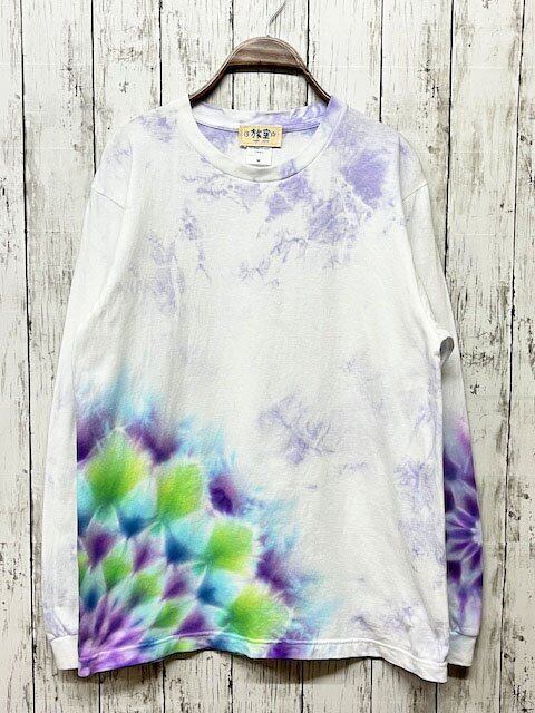 タイダイ染め Tie-dye 長袖Tシャツ Mサイズ 曼荼羅 ブルーパープル ムラ染め HD19-22