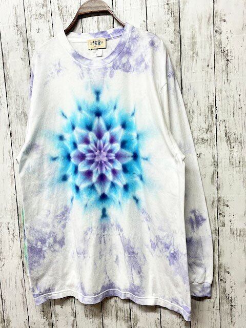 タイダイ染め Tie-dye 長袖Tシャツ XLサイズ 曼荼羅 ブルーパープル ムラ染め HIPPIES DYE新作 HD19-23