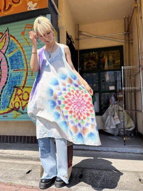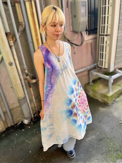 タイダイ染め 新型ノースリーブワンピース 湖面に映るラベンダーのような美しい色合いに幻想的な大曼荼羅 HD19-27
