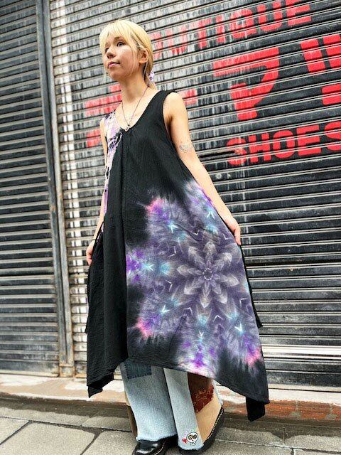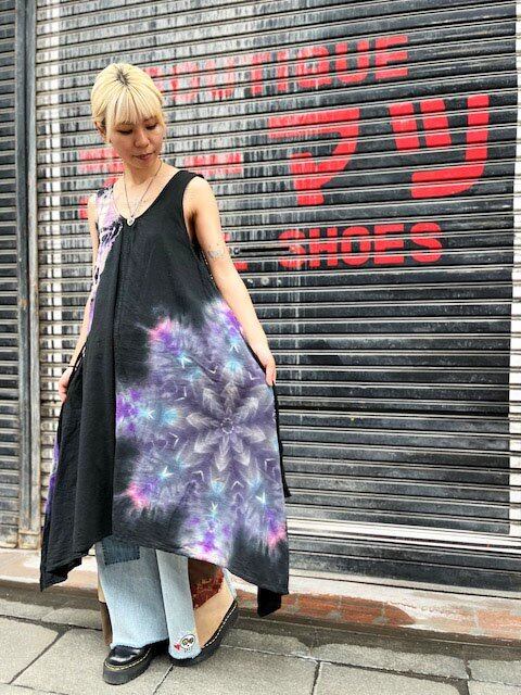 タイダイ染め 新型ノースリーブワンピース ブラックビューティ 遥か銀河を想わせる美しい華のような幻想的なスノーフレイク HD19-29