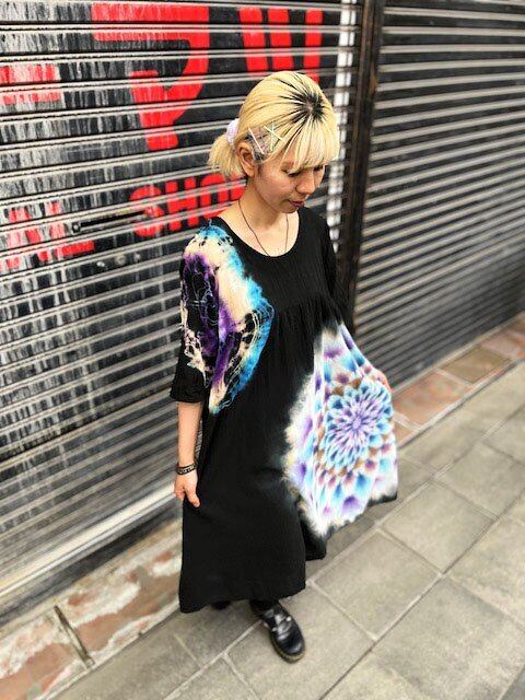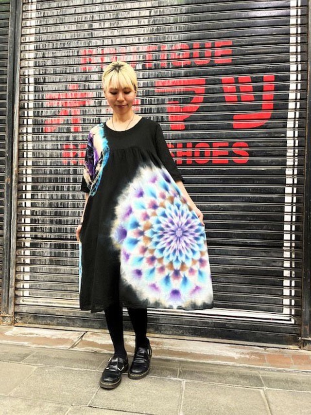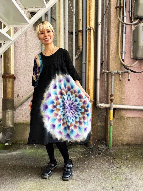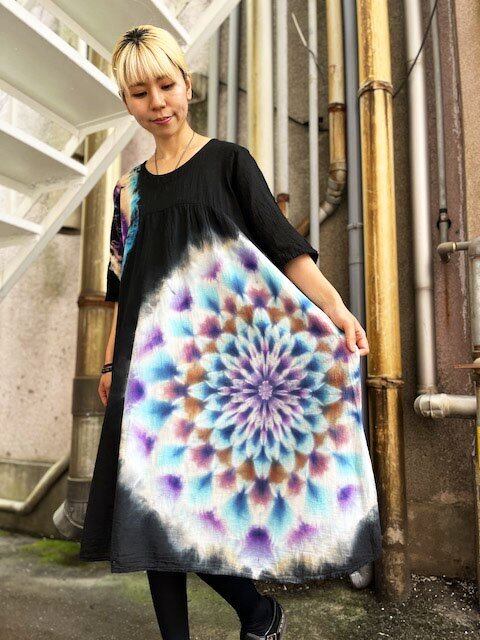 タイダイ染め Tie-dye ロングワンピース ブラックビューティ 美しい大曼荼羅 Hippies Dye最新作 HD19-49