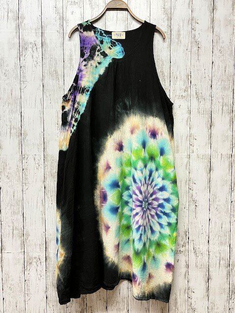 タイダイ染め 新型ノースリーブワンピース ブラックビューティ 幻想的な碧翠色の大曼荼羅 HD19-47