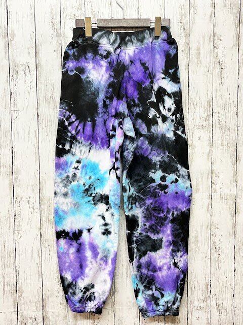 タイダイ染め Tie-dye スウェットパンツ Mサイズ ブラック×パープルブルー ムラ染め HD19-55
