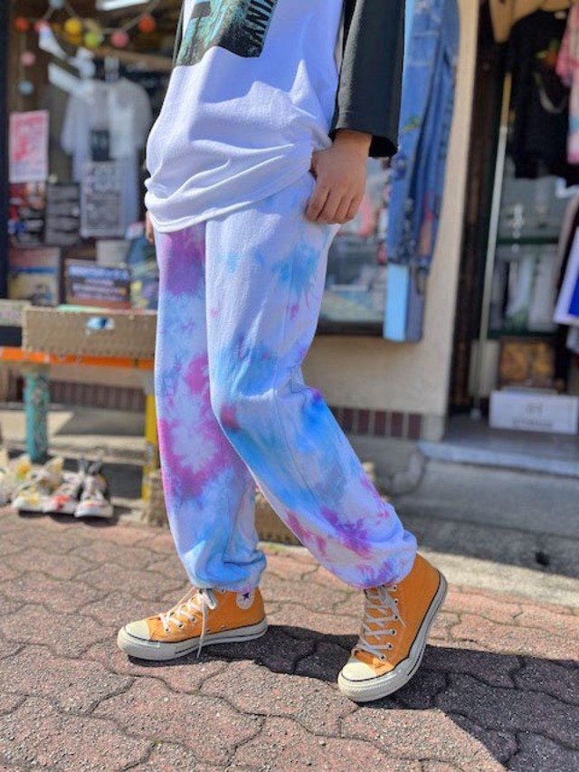 トレンドのスウェットパンツを、当店タイダイ染めアーティストが染め上げた一点物。