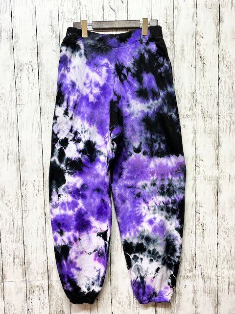 タイダイ染め Tie-dye スウェットパンツ XLサイズ ブラック×パープル ムラ染め HD19-60