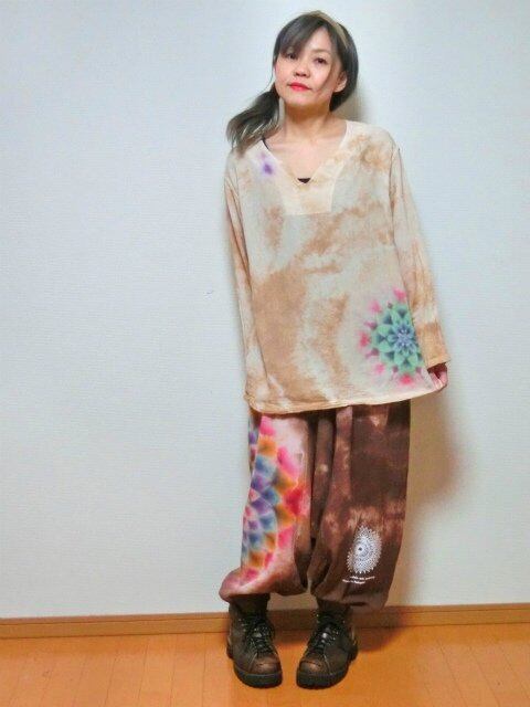 タイダイ染め Tie-dye 新型メンズトップス♪旅人ライクなベージュのムラ染めに幻想的な曼荼羅模様♪ HD10-9