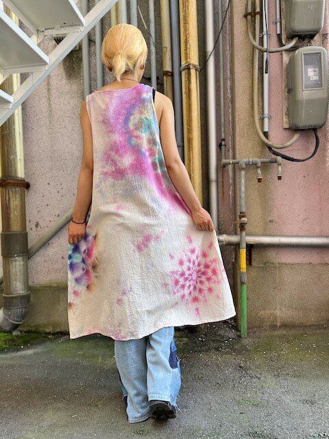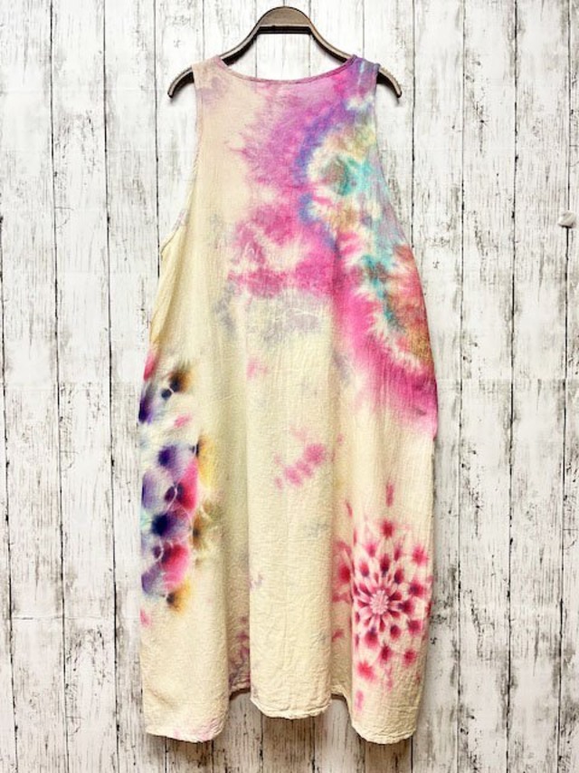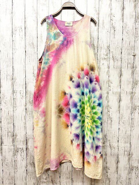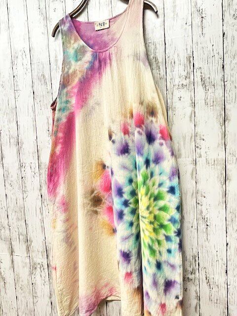 タイダイ染め 新型ノースリーブワンピース 美しい虹色の幻想的な大曼荼羅 HD19-73