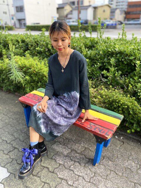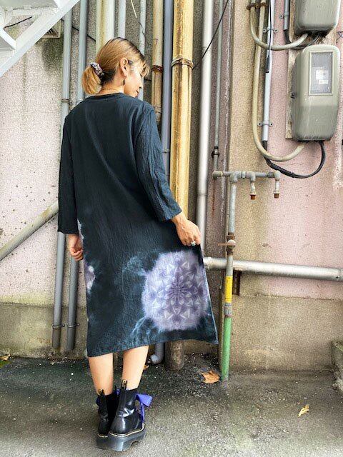 タイダイ染め Tie-dye ロングワンピース ブラックビューティ 美しい黒のスノーフレイク HD14-99