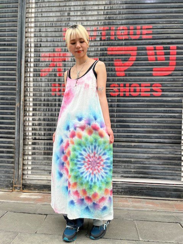 タイダイ染め Tie-dye ロングキャミワンピース 美しい華のような大曼荼羅 Hippies Dye最新作 HD19-81
