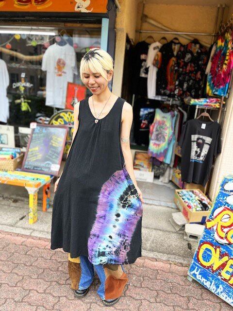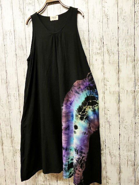 タイダイ染め 新型ノースリーブワンピース ブラックビューティ 美しい染め色ブラックにオーロラ模様 HD19-91