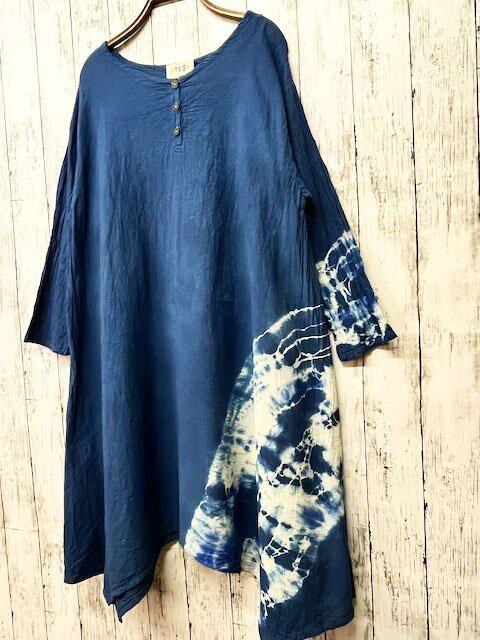 タイダイ染め Tie-dye ワンピース 長袖 藍色の絞り染め HD20-03