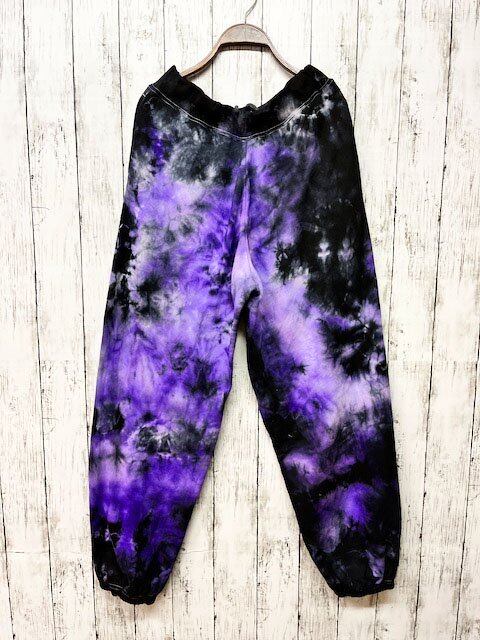 タイダイ染め Tie-dye スウェットパンツ Lサイズ ブラック×パープル ムラ染め HD20-19
