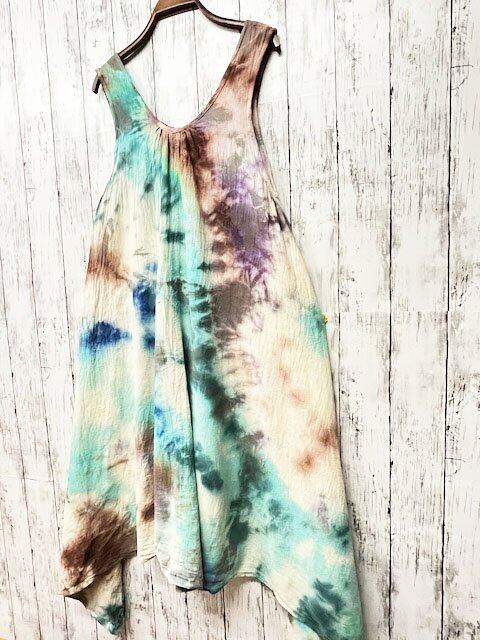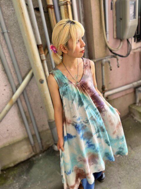 タイダイ染め 新型ノースリーブワンピース パープルグリーンミックス HD20-22