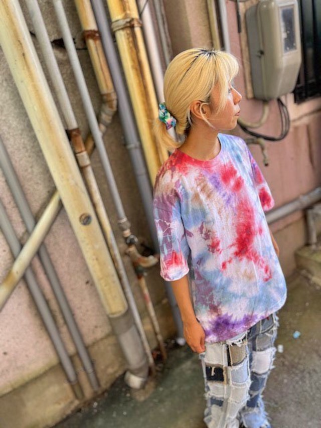 タイダイ染め Tie-dye ビッグシルエット Tシャツ Mサイズ ブルー×レッドミックス HD20-23