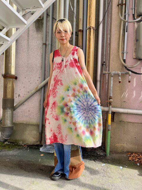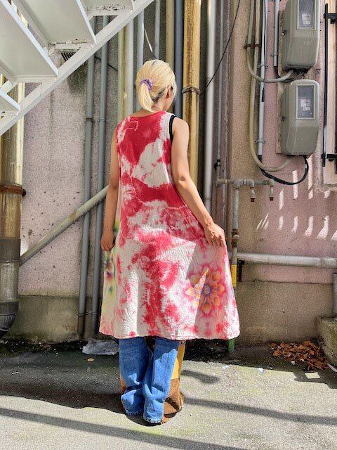 タイダイ染め 新型ノースリーブワンピース レッドのムラ染めに幻想的な大曼荼羅 HD20-25