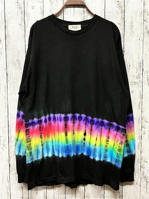 タイダイ染め Tie-dye 長袖Tシャツ Lサイズ ブルー ムラ染め HIPPIES DYE ブラック HD20-36