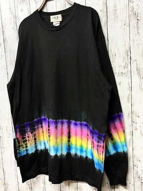 タイダイ染め Tie-dye 長袖Tシャツ XLサイズ ブルー ムラ染め HIPPIES DYE ブラック HD20-38