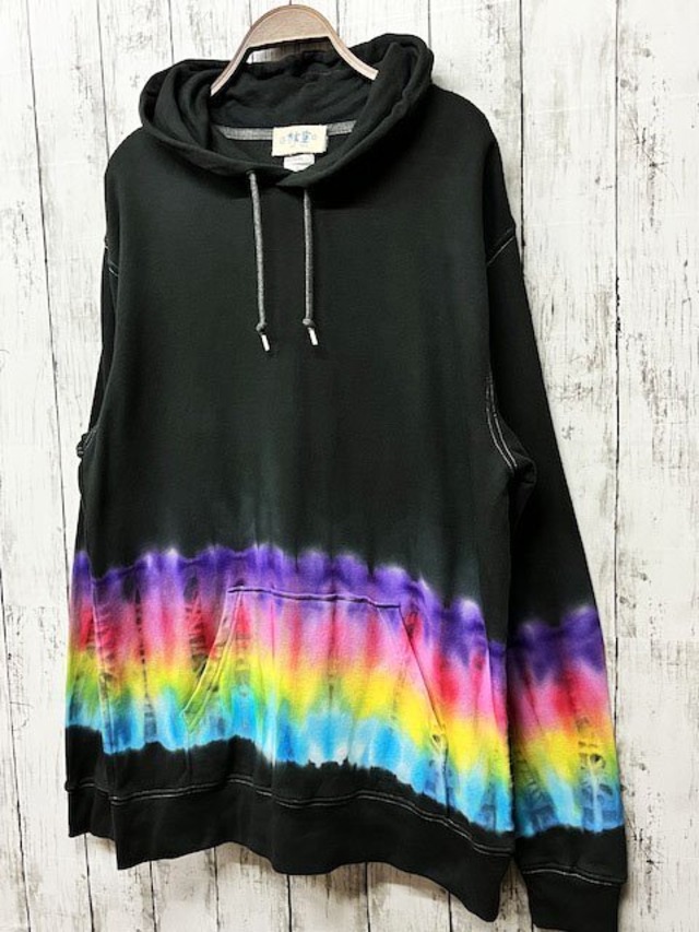 タイダイ染め Tie-dye プルオーバー フーディー XLサイズ ブラック×カラフル HD20-45