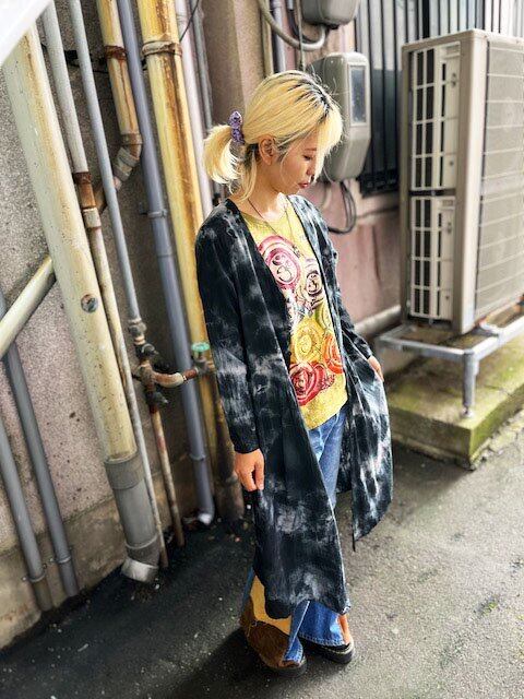 タイダイ染め Tie-dye 前開きのロングワンピース ムラ染め ブラック HD20-50