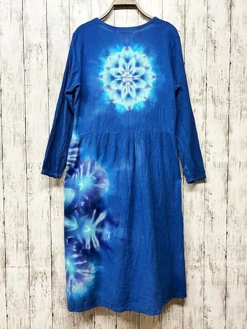 タイダイ染め Tie-dye 前開きのロングワンピース ブルービューティ 幻想的なスノーフレイク HD20-55
