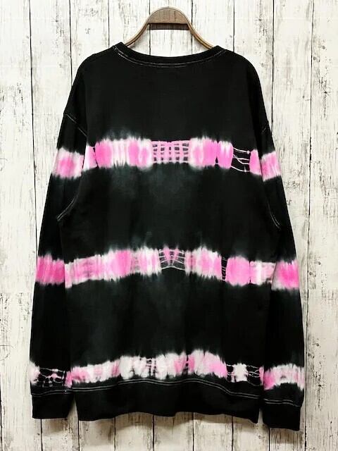 タイダイ染めスウェット トレーナー XXLサイズ ブラック×ピンク ボーダーダイ HD20-57