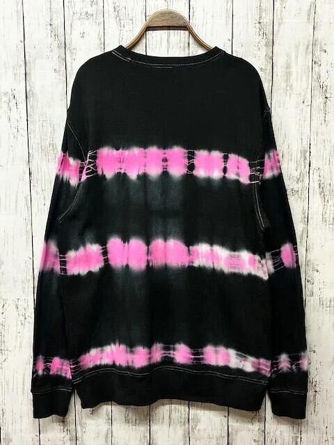 タイダイ染め Tie-dye スウェット トレーナー XLサイズ ブブラック×ピンク ボーダーダイ HD20-62
