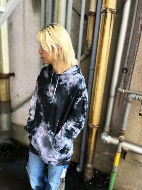 タイダイ染め Tie-dye プルオーバー フーディー XLサイズ ムラ染めブラック HD20-63