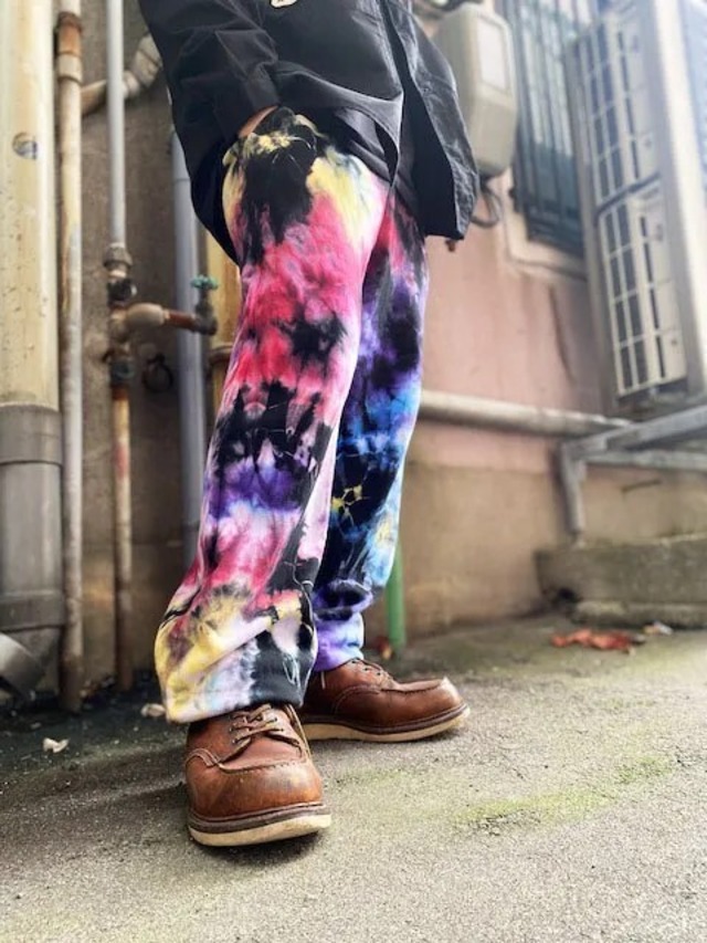 トレンドのスウェットパンツを、当店タイダイ染めアーティストが染め上げた一点物。