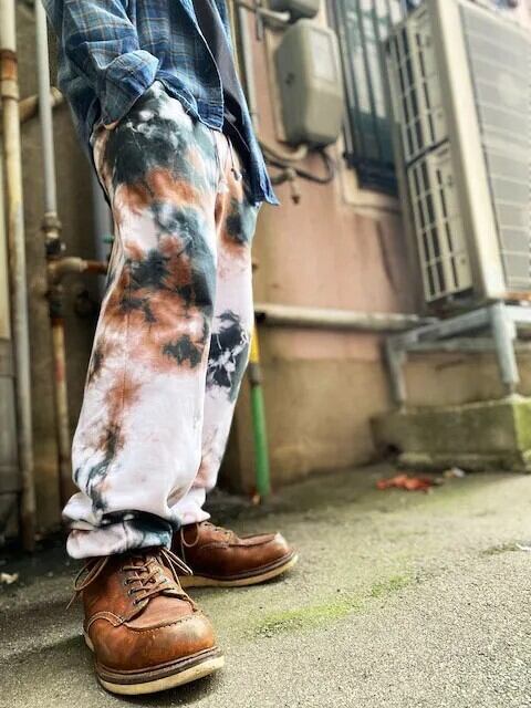 トレンドのスウェットパンツを、当店タイダイ染めアーティストが染め上げた一点物。