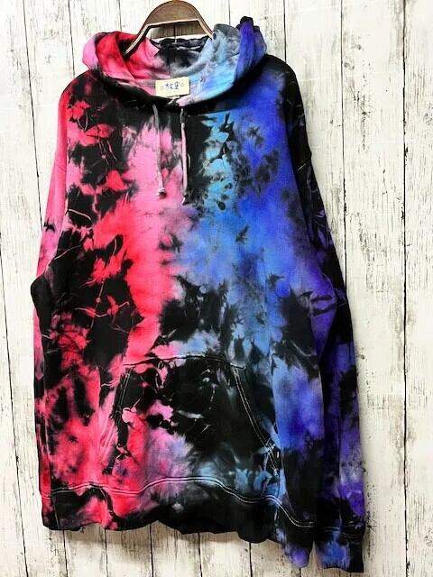 タイダイ染め Tie-dye プルオーバー フーディーメンズ XXLサイズ ブラック×カラフル HD21-02