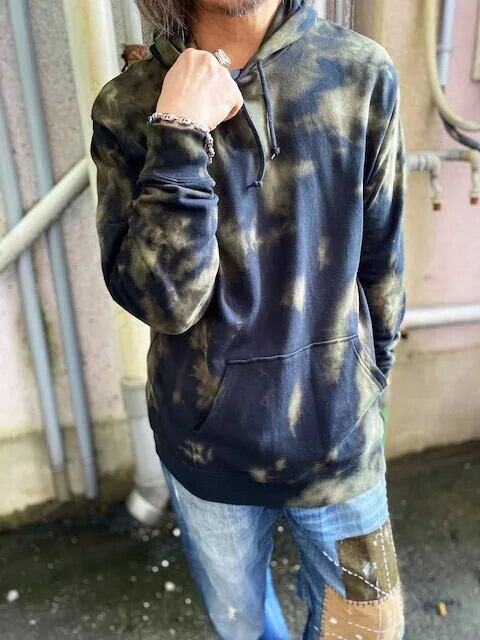 タイダイ染め Tie-dye プルオーバー フーディーメンズ XXLサイズ ブラック×カーキ HD21-06