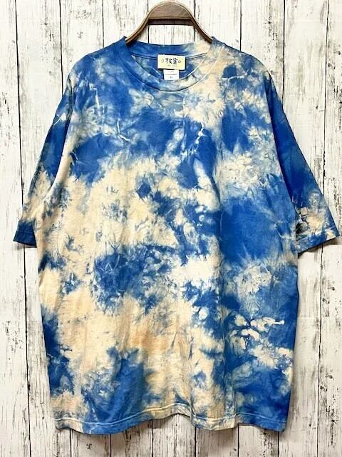 タイダイ染め Tie-dye ビッグシルエット Tシャツ XLサイズ インディゴブルー×ベージュ Hippies Dye HD21-24