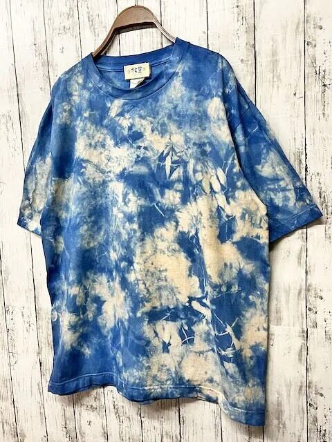 タイダイ染め Tie-dye ビッグシルエット Tシャツ Mサイズ インディゴブルー×ベージュ Hippies Dye HD21-27