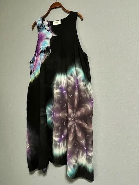 タイダイ染め 新型ノースリーブワンピース ブラックビューティ 美しい幻想的な大曼荼羅 HD21-44