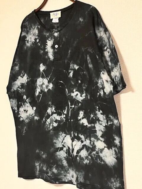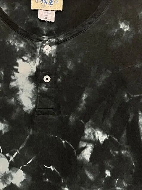 タイダイ染め Tie-dye ヘンリーネック Tシャツ XLサイズ ブラック×ベージュ ムラ染め Hippies Dye HD21-47