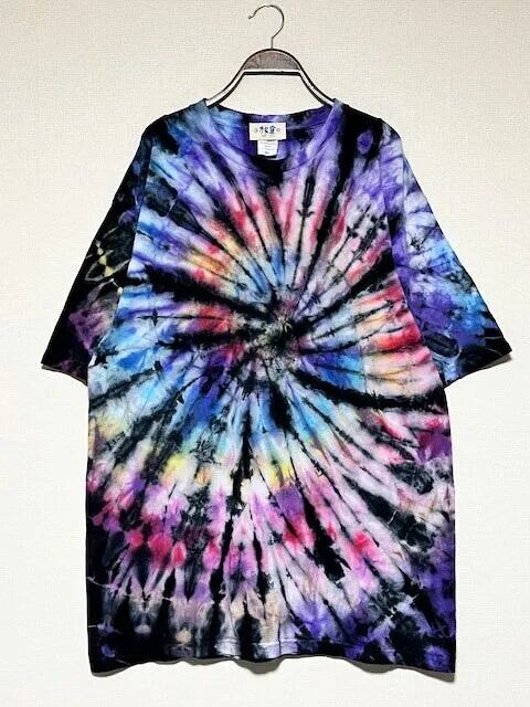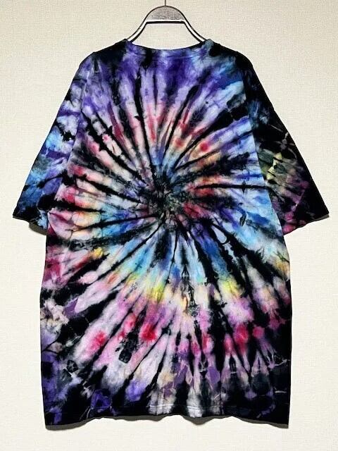 タイダイ染め Tie-dye Tシャツ XXLサイズ ブラック×カラフル スパイラル Hippies Dye HD21-59