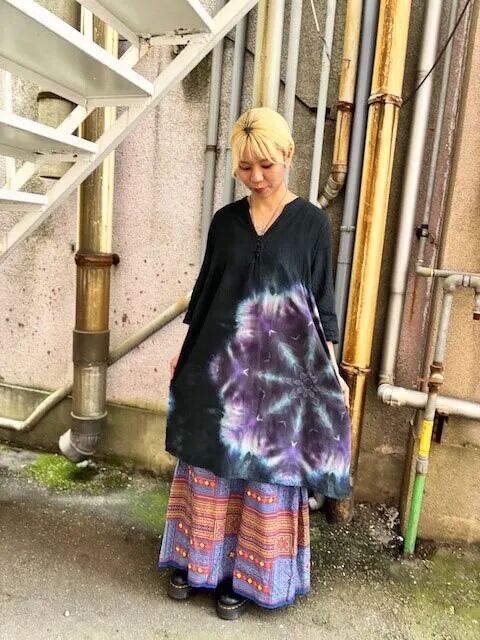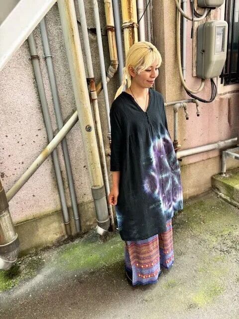 タイダイ染め Tie-dye チュニック ワンピース ブラックビューティ 漆黒のスノーフレイク HD21-69