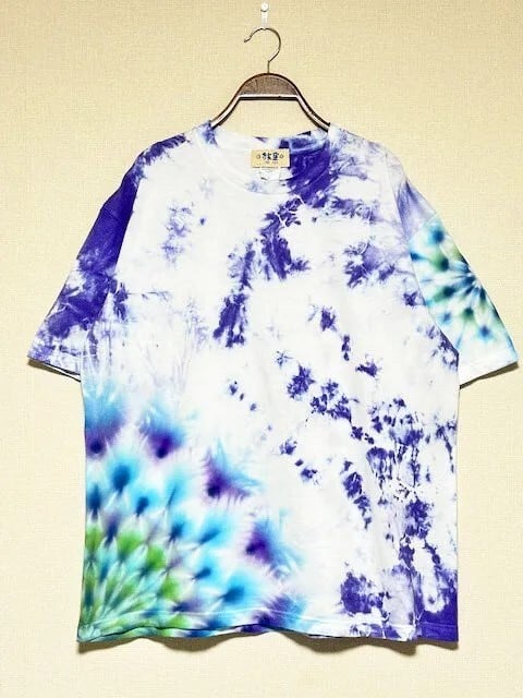 タイダイ染め Tie-dye ビッグシルエット Tシャツ メンズ Lサイズ 曼荼羅 ブルーパープル ムラ染め Hippies Dye HD21-77