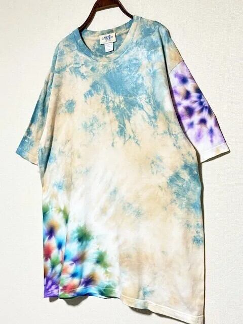 タイダイ染め Tie-dye Tシャツ メンズ XXL 曼荼羅 ブルー×ベージュ ムラ染め Hippies Dye HD21-78