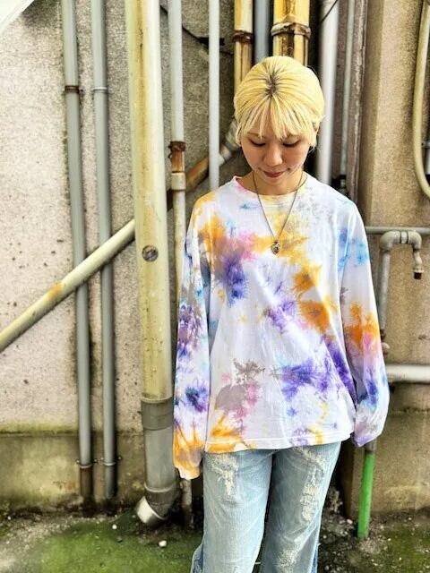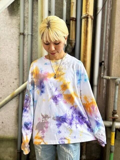 タイダイ染め ビックシルエット 長袖Tシャツ Mサイズ カラフルミックス HIPPIES DYE HD21-91