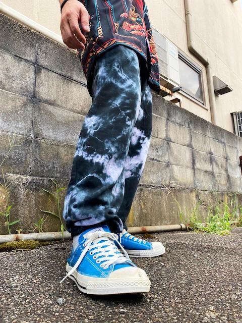 トレンドのスウェットパンツを、当店タイダイ染めアーティストが染め上げた一点物。
