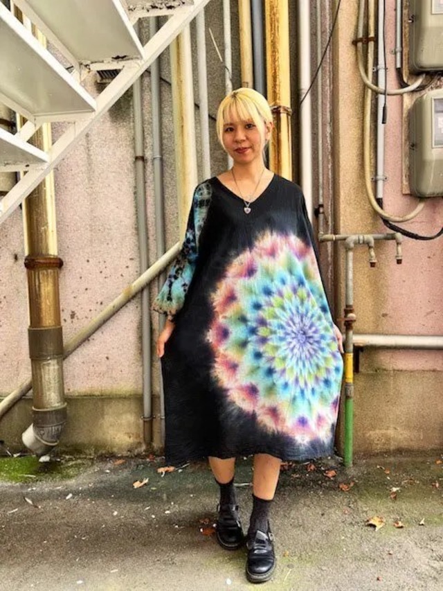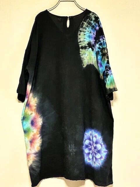 タイダイ染め Tie-dye ゆったりワンピース ブラックビューティ 美しい幻想的な大曼荼羅 Hippies Dye最新作 HD22-48