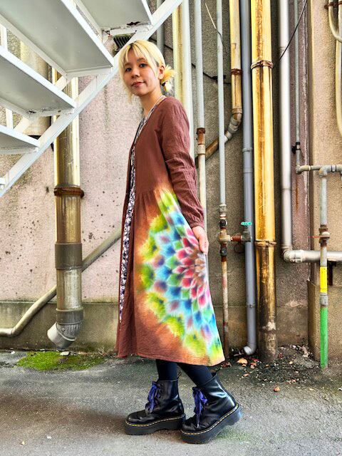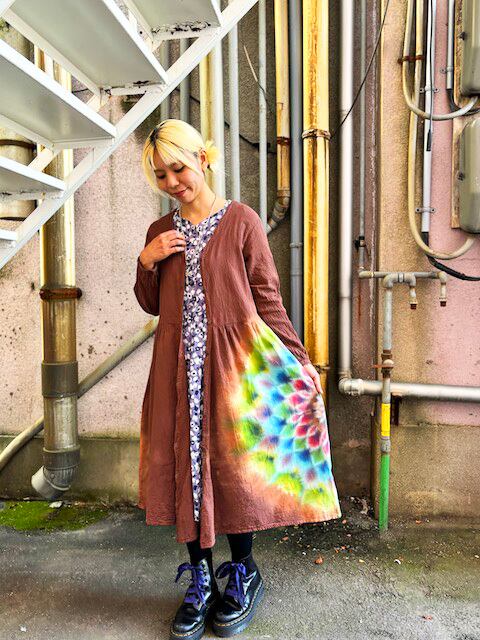 タイダイ染め前開きのロングワンピースで、おしゃれを存分に楽しんでみてはいかがでしょうか?