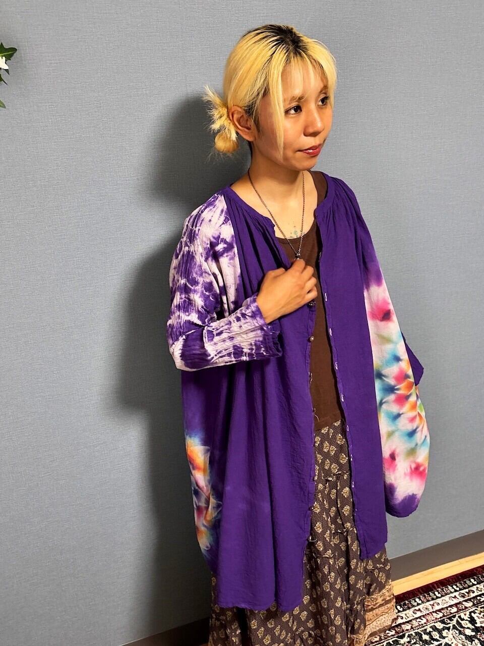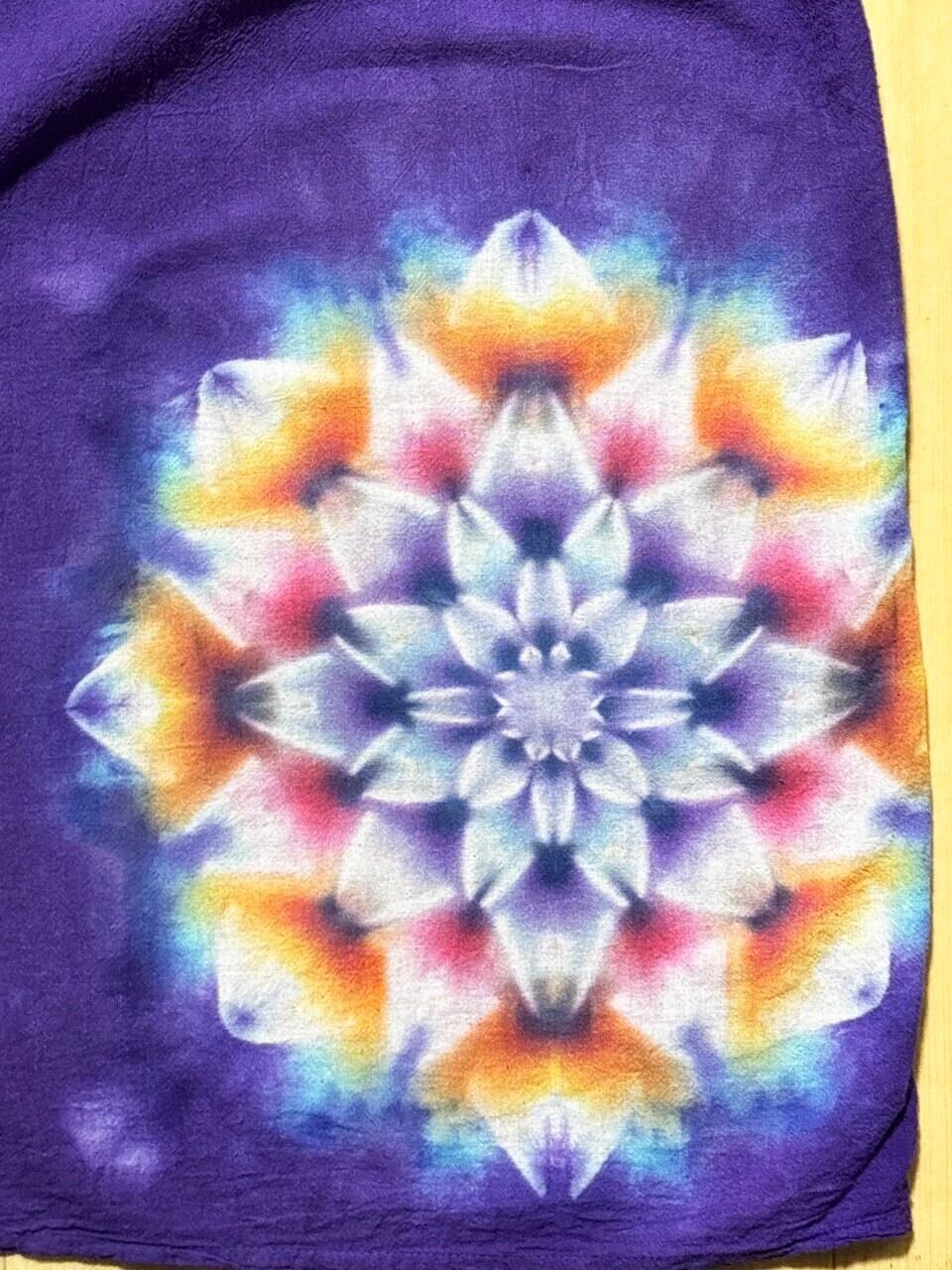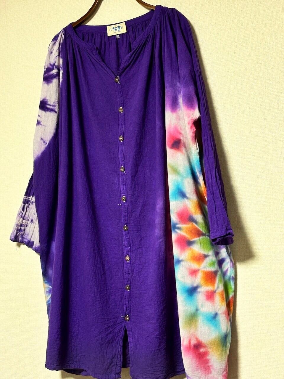 タイダイ染め Tie-dye 前開きワンピース 深い紫に幻想的で華やかな大曼荼羅 HD23-01
